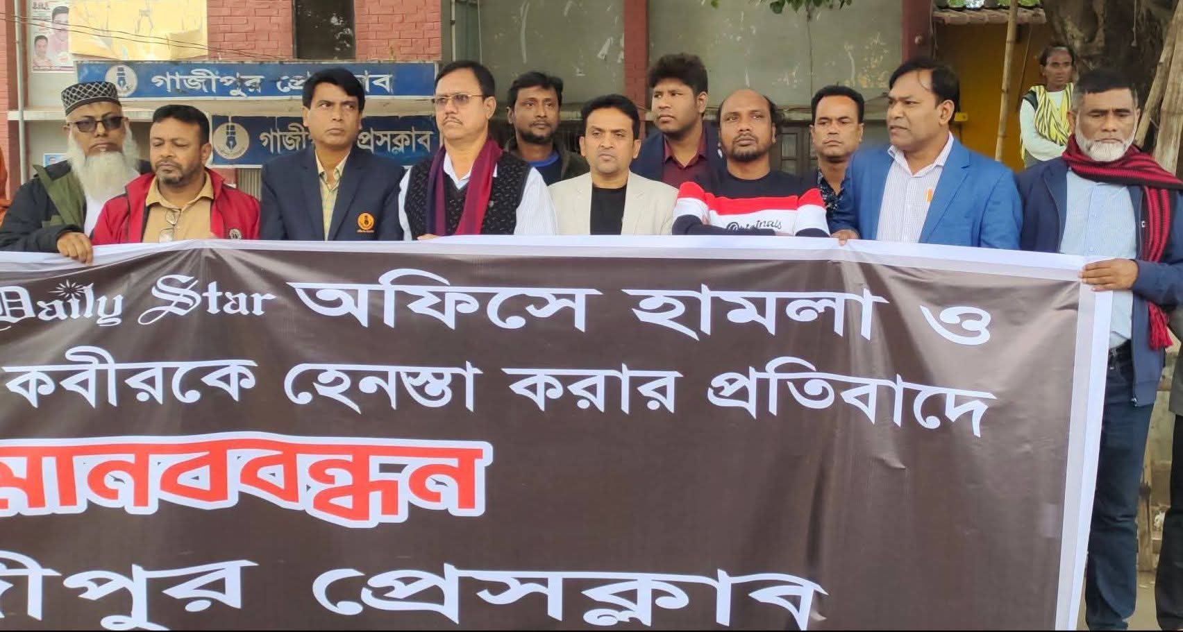 গাজীপুরে গণমাধ্যমের ওপর হামলার প্রতিবাদে মানববন্ধন