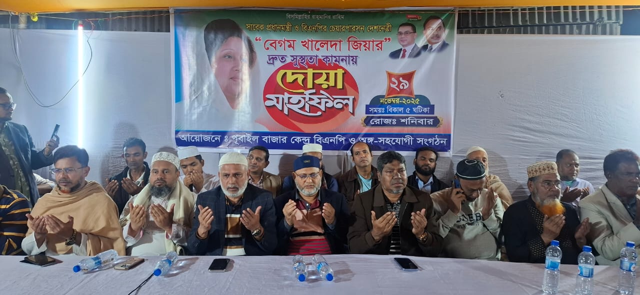 পূবাইলে দেশনেত্রী বেগম খালেদা জিয়ার রোগ মুক্তি কামনায় দোয়া ও তবারক বিতরণ