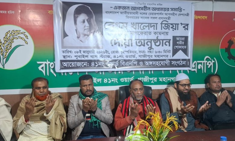 পূবাইলে বেগম খালেদা জিয়ার মাগফিরাত কামনায় দোয়া মাহফিল