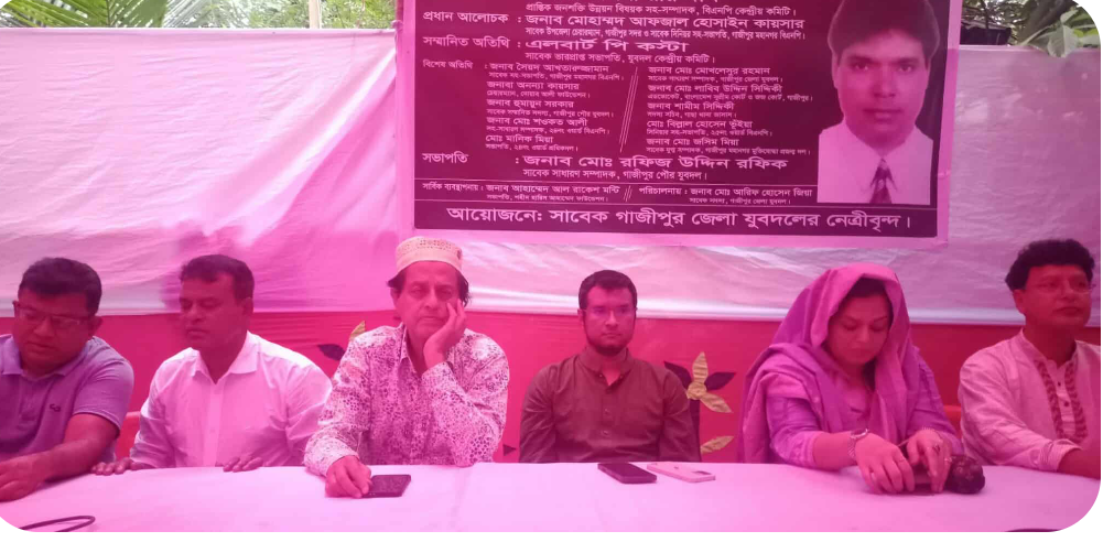 রবিবার (২ নভেম্বর) বিকেলে, মহানগরের স্টেশন রোড কায়সার গার্ডেনে এই অনুষ্ঠানের আয়োজন করা হয়। সাবেক পৌর যুবদলের সাধারণ সম্পাদক মোঃ রফিজ উদ্দিন রফিকের সভাপতিত্বে, প্রধান অতিথি হিসেবে বক্তব্য রাখেন, মহানগর বিএনপির সাবেক সহ সভাপতি মোহাম্মদ আফজাল হোসেন কায়সার। প্রধান আলোচক হিসেবে বক্তব্য রাখেন, গাজীপুর জেলা যুবদলের সাবেক সাধারণ সম্পাদক মোঃ মোখলেছুর রহমান। এ সময় বিশেষ অতিথি হিসেবে বক্তব্য রাখেন, এডভোকেট লাবিব উদ্দিন সিদ্দিকী, নওয়াব আলী ফাউন্ডেশন এর চেয়ারম্যান অনন্যা কায়সার, ২৫ নং ওয়ার্ড বিএনপি'র সিনিয়র সহ সভাপতি মোঃ বিল্লাল হোসেন ভূইয়া।অনুষ্ঠানটি সঞ্চালনা করেন, গাজীপুর জেলা যুবদলের সাবেক সদস্য মোঃ আরিফ হোসেন ভূইয়া, ২৪ নং ওয়ার্ড বিএনপি'র সহ-সাধারণ সম্পাদক মোঃ শওকত আলী। অন্যান্যদের মধ্যে এসময় উপস্থিত ছিলেন, জেলা ও মহানগর বিএনপি,যুবদল ও অন্যান্য সহযোগী সংগঠনের নেতৃবৃন্দ সহ এলাকার গণ্যমান্য ব্যক্তিবর্গ।